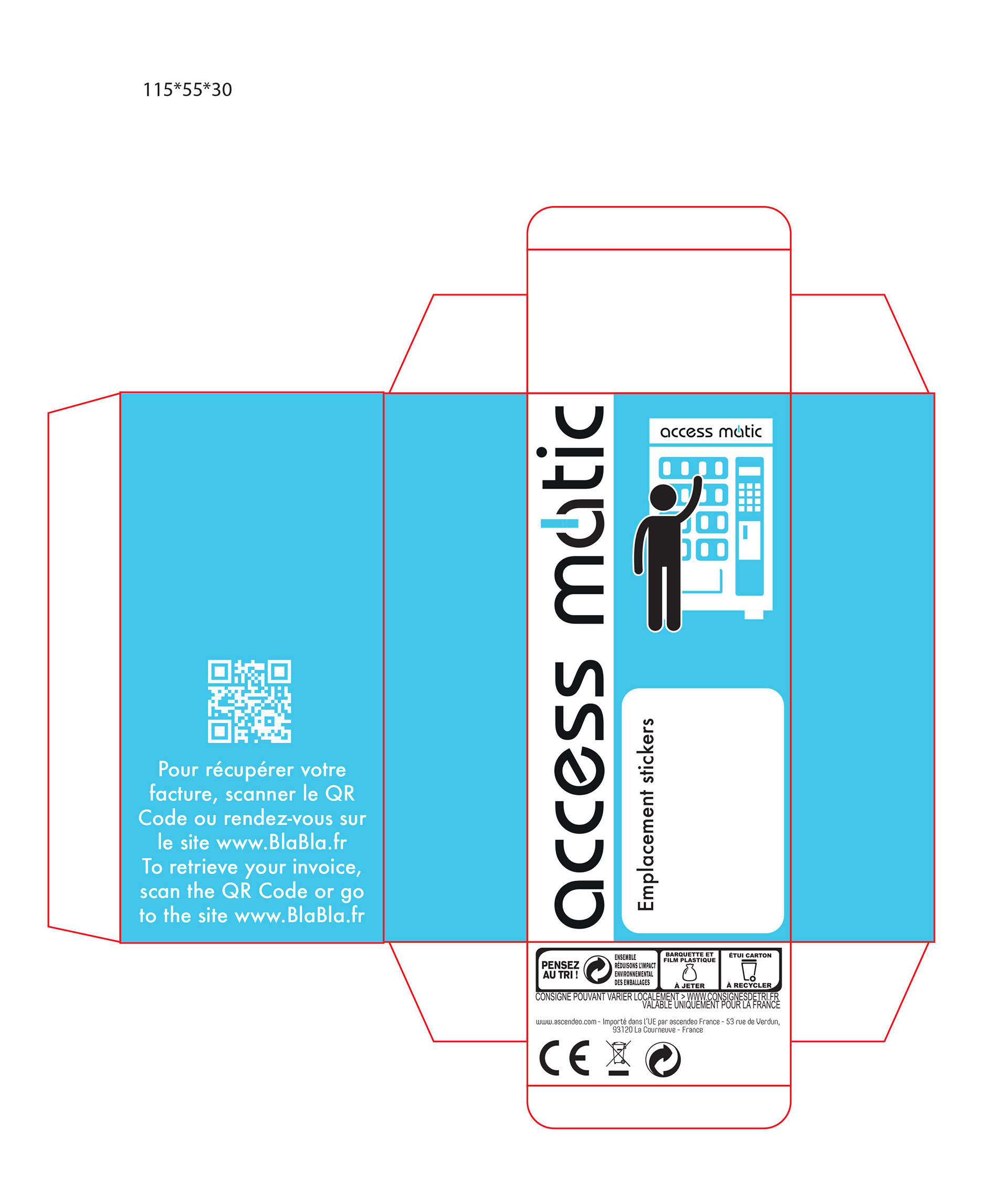 Tout en respectant le gabarit de l'imprimeur, j'ai appliqué la charte Edenred sur la boîte en y ajoutant diverses informations.